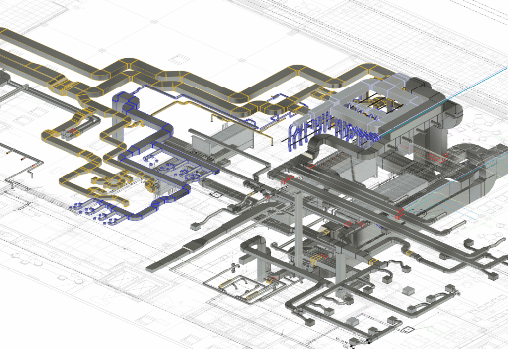 Durch die präzise 3D-Planung mit Revit konnten Kollisionen frühzeitig erkannt und vermieden werden. Das Ergebnis war ein installationssicherer Leitungsverlauf, der alle baulichen Gegebenheiten und Gewerke berücksichtigt und eine reibungslos umsetzbare Ausführung ermöglichte.